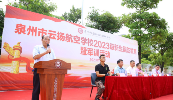 許碧奎副校長宣布泉州市云揚航空職業(yè)技術(shù)學(xué)校2023級軍訓(xùn)正式閉營。