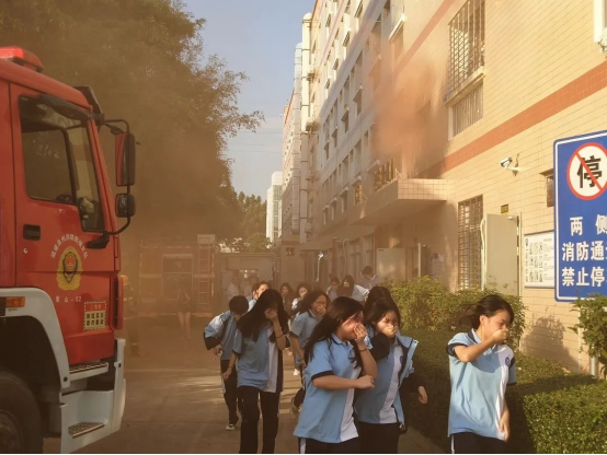 培訓(xùn)結(jié)束后,我校聯(lián)合紫山消防救援站在宿舍樓組織師生進(jìn)行了消防逃生疏散應(yīng)急演練。參加學(xué)生用“濕毛巾”掩口掩鼻,低下身子,按照安全逃生路線,迅速有序地撤出,跑到指定的安全地帶。