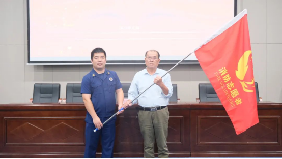 惠安縣為消防大隊(duì)向我校消防志愿者服務(wù)隊(duì)授旗。