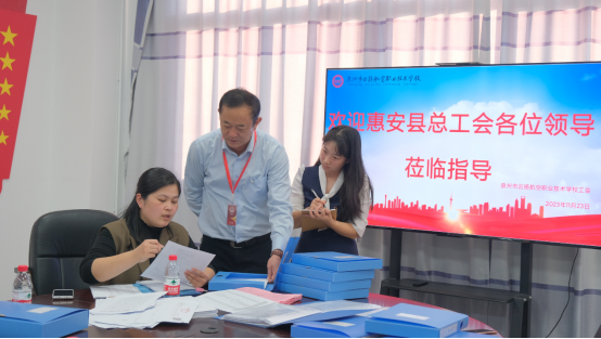 11月23日,惠安縣總工會副主席任惠川,黃塘鎮(zhèn)黨委組織委員、鎮(zhèn)工會主席黃秀敏帶隊(duì)到我校進(jìn)行考察,認(rèn)真審閱了申報材料,實(shí)地查看了職工之家、職工閱覽室等,全面評議和驗(yàn)收了我校工會的工作開展以及職工之家的建設(shè),對我校工會的工作成果給予了肯定和鼓勵。