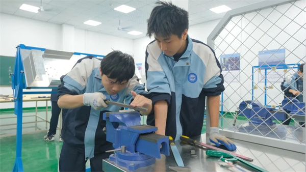 機電一體化專業(yè)此次實訓(xùn)周安排鉗工實訓(xùn),讓學(xué)生了解鉗工操作在工作中或生產(chǎn)中的重要作用。通過制作“鉗工錘”,讓學(xué)生能熟練掌握金工各種常用設(shè)備、工量具的使用方法,學(xué)會鋸銷、銼削、攻螺紋、套螺紋、鉆孔等操作。培養(yǎng)學(xué)生的獨立操作能力、獨立根據(jù)圖紙或技術(shù)要求進行加工的能力,提高學(xué)生實踐操作能力及團隊的協(xié)作能力。