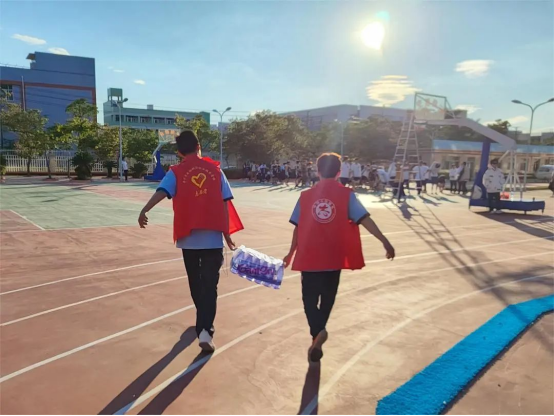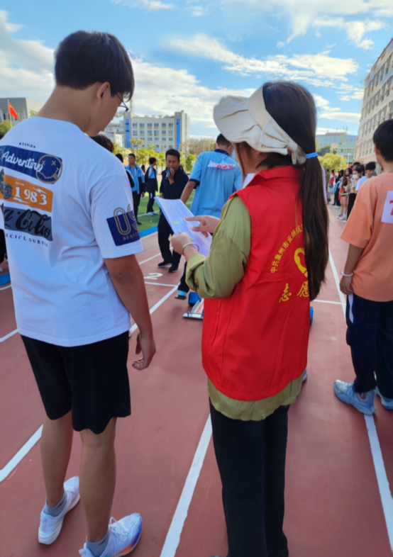 在運動場的每一個角落都能見到志愿者的身影,處處活躍著最美“志愿紅”。志愿者們始終堅守崗位,為賽道上的運動員們吶喊助威,拍照記錄精彩瞬間;為運動員遞送紙巾、飲用水等物資,攙扶下賽場的運動員等等,提供各種必要的幫助和支持。他們踐行著“奉獻、友愛、互助、進步”的志愿者精神,用真心、真情服務(wù)全場,用行動踐行著黨員團員的責(zé)任和擔(dān)當(dāng),他們的辛勤工作得到了全體師生的高度好評。