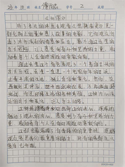 緊隨其后的是春節(jié)熱播的電影《熱辣滾燙》片段賞析,該片講述了一個充滿歡笑與淚水的故事。陳炳耀副校長語重心長的說道:“該片樂瑩(主人公)雖然沒有贏得比賽,但她卻活出了自己的人生,學會了拒絕、學會了愛自己。讓很多負重前行的人也學會了改變自己的心態(tài),為成為更好的自己而努力,希望在座各位同學們學習主人翁精神“人生只活一次,必須熱辣滾燙!”通過陳炳耀副校長勵志沉穩(wěn)的話語將本次課程推向一個小高潮。