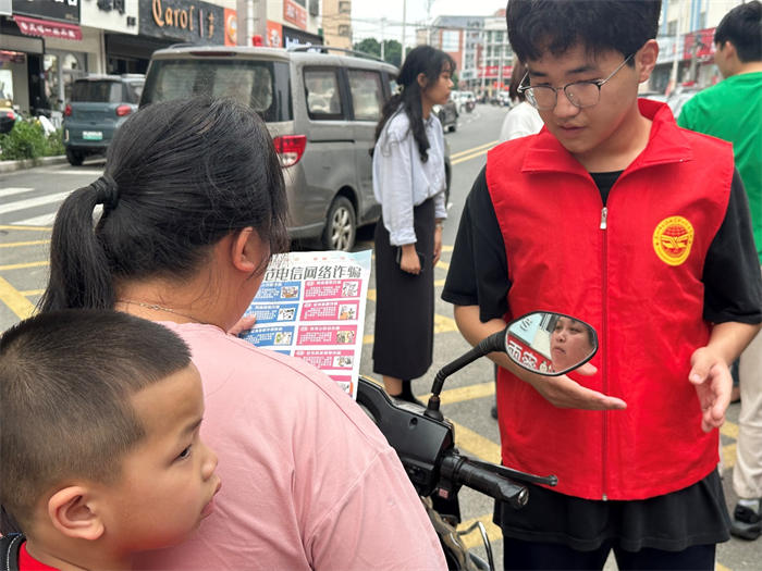 “紙上談兵終覺(jué)淺,絕知此事要躬行”。講座結(jié)束后,我校團(tuán)支部聯(lián)合黃塘鎮(zhèn)團(tuán)委、鎮(zhèn)派出所和聯(lián)通公司組織志愿者們深入黃塘街道,向黃塘街道群眾發(fā)放反詐宣傳冊(cè)并指導(dǎo)群眾下載“國(guó)家反詐中心”APP,用通俗易懂的語(yǔ)言向群眾普及反詐防騙宣傳知識(shí),解答群眾遇到的各類問(wèn)題,有針對(duì)性地對(duì)易受騙人群、詐騙手段、詐騙類型、防范知識(shí)等進(jìn)行詳細(xì)講解,提醒大家不輕信別人、不輕易點(diǎn)開(kāi)不明鏈接、不隨意透露個(gè)人信息,不要被蠅頭小利所蒙騙,時(shí)刻緊繃防詐騙防范弦。
