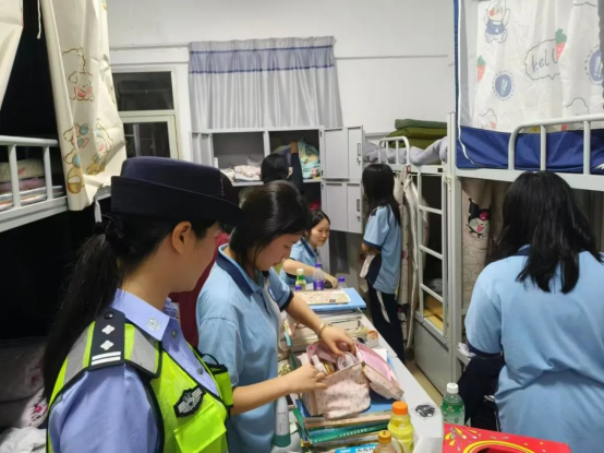 此次檢查得到了黃塘派出所的高度重視和大力支持。民警們與學(xué)校學(xué)工處工作人員、班主任等組成聯(lián)合檢查組,深入學(xué)生宿舍,對用電安全、消防安全、治安防范等方面進行了細致的檢查。檢查過程中,檢查組重點查看了學(xué)生是否攜帶違禁品、宿舍內(nèi)是否存在私拉亂接電線、使用大功率電器等違規(guī)用電行為,以及消防設(shè)施是否完好有效。同時,法治副校長、派出所陳安民警官還向?qū)W生們宣傳了安全防范知識,提醒大家要提高安全意識,注意防火、防盜、防詐騙,共同維護宿舍的安全。