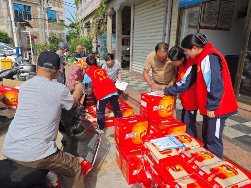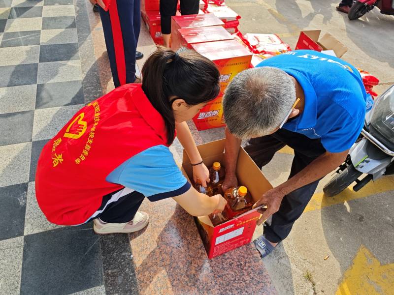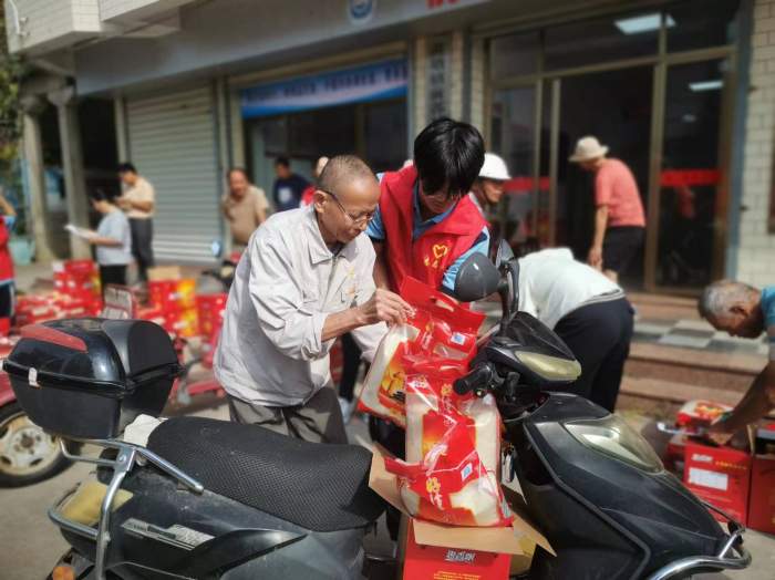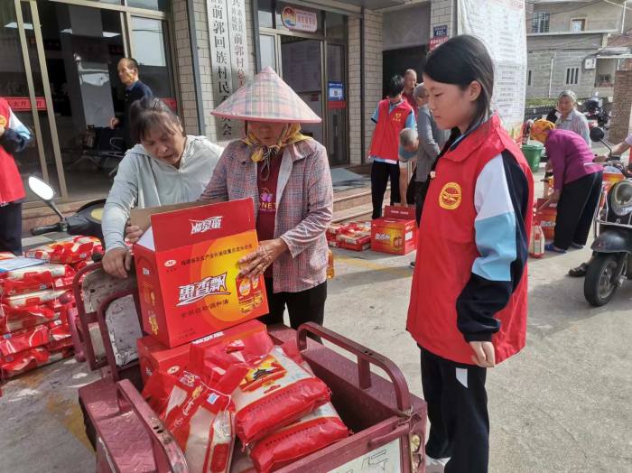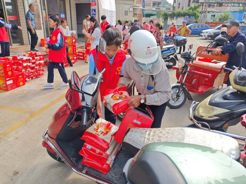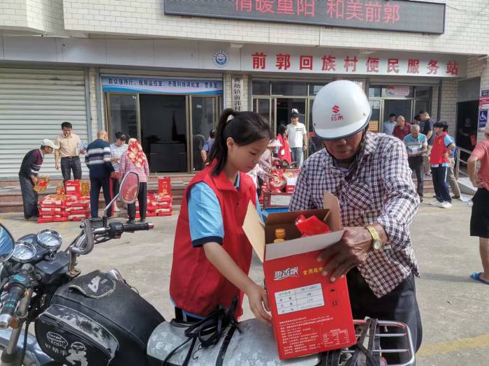 前郭村委會的廣場上,人聲鼎沸,節(jié)日的氣氛濃厚。志愿者們忙碌的身影在人群中穿梭,他們與老人們親切交流,詳細了解他們的生活和健康狀況,送上節(jié)日的問候和祝福,透露著青年一輩對傳統(tǒng)節(jié)日的尊重和對老人的敬愛。