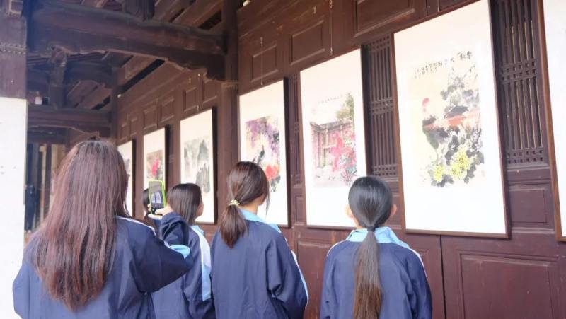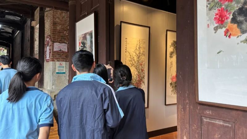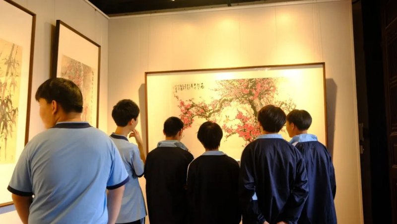 活動(dòng)當(dāng)天,云揚(yáng)學(xué)子身著校服,滿懷藝術(shù)熱情,有序步入展廳。陳維揚(yáng)先生精選的80幅國(guó)畫作品,筆墨靈動(dòng),意境深遠(yuǎn),即刻吸引眾人。學(xué)子們不僅學(xué)習(xí)了國(guó)畫技法與精妙構(gòu)圖,更深刻感悟到作品背后的歷史與文化,激發(fā)了他們對(duì)傳統(tǒng)文化的熱愛與傳承使命感。