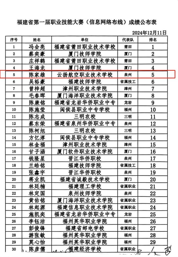 教師選手中,陳家雄老師具備扎實(shí)的理論知識,熟練的實(shí)踐操作能力在“信息網(wǎng)絡(luò)布線”項(xiàng)目獲得省第五名。泉州市排名第一,為泉州市爭得一份榮譽(yù)。內(nèi)容包括光纖布線系統(tǒng)、機(jī)構(gòu)化布線系統(tǒng)、互聯(lián)網(wǎng)工業(yè)應(yīng)用、速度測試、故障排除等五個(gè)模塊,項(xiàng)目比賽時(shí)間為兩天,共計(jì)6.25小時(shí),與30多個(gè)選手同臺競技,脫穎而出。