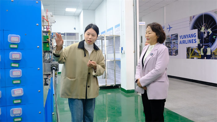 程書記一行首先深入我校港灣校區(qū),聽取了有關(guān)學(xué)?;靖艣r、辦學(xué)歷程和辦學(xué)特色的介紹,隨后實(shí)地參觀考察了我校黃塘校區(qū)飛機(jī)維修、機(jī)電一體化等各專業(yè)實(shí)訓(xùn)室及航空研學(xué)館,對(duì)我校工學(xué)交替式的“產(chǎn)、學(xué)、研、用”立體教學(xué)模式、先進(jìn)的辦學(xué)環(huán)境和實(shí)訓(xùn)條件表示贊賞。