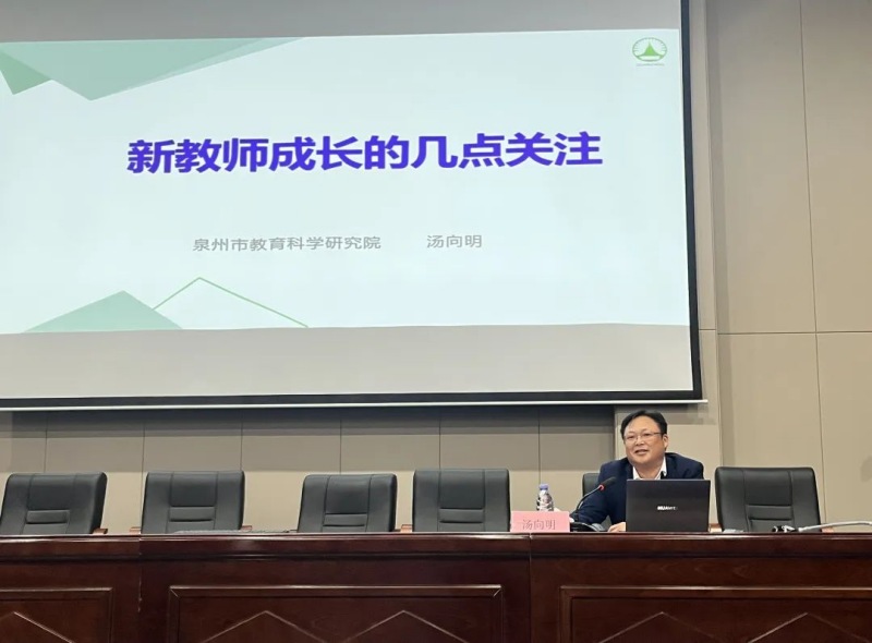 泉州市教育科學(xué)研究院的院長兼書記湯向明,以《新教師成長的幾點關(guān)注》為題,從備課、授課、作業(yè)布置及教學(xué)研究等多個教學(xué)環(huán)節(jié)切入,并輔以豐富的教學(xué)課堂實例進(jìn)行說明。湯院長指出,教師需積極承擔(dān)引導(dǎo)者的角色,通過運用鼓勵性語言和啟發(fā)性提問,激發(fā)學(xué)生的主動思考,培養(yǎng)其自主探索知識的能力;同時,教師應(yīng)密切關(guān)注學(xué)生的思維過程,洞察其思維的獨特性與發(fā)展需求。此外,湯院長還提倡教師應(yīng)致力于提升課堂的開放性,將抽象知識轉(zhuǎn)化為直觀、生動的立體學(xué)習(xí)內(nèi)容。整場講座精彩紛呈,與會老師們?nèi)褙炞ⅲ两渲?,深受啟發(fā)。