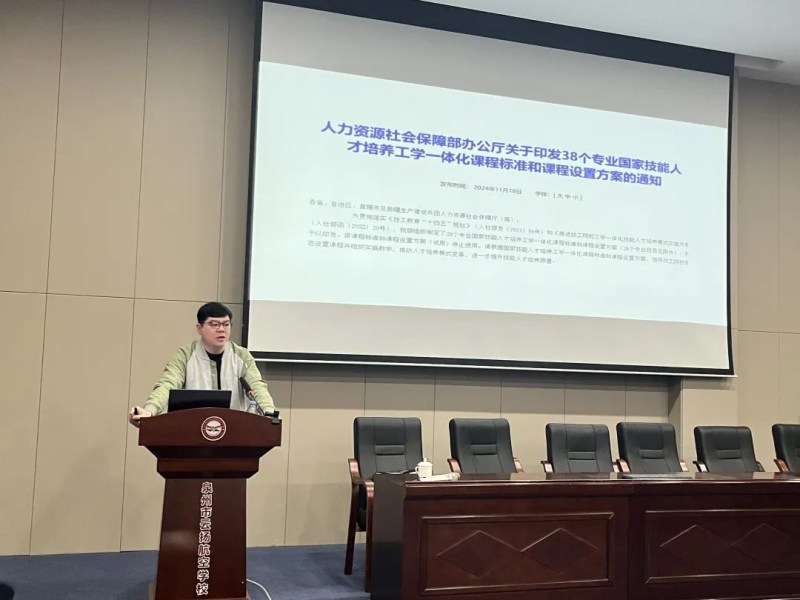 泉州技師學(xué)院教務(wù)科副科長吳文理,圍繞“工學(xué)一體化”建設(shè)這一核心主題,對工學(xué)一體化培養(yǎng)模式的主要任務(wù)、發(fā)展歷程、一體化課程改革的本質(zhì)與內(nèi)涵,以及工學(xué)一體化的理論與實踐等方面進(jìn)行了全面而深入的剖析,并通過多個維度的細(xì)致講解,揭示了如何超越傳統(tǒng)教學(xué)的局限,實現(xiàn)理論與實踐的深度融合。通過吳科長的闡述,與會人員對工學(xué)一體化教學(xué)模式有了更為清晰和深刻的理解,對如何突破傳統(tǒng)教學(xué)的限制,達(dá)成理論與實踐的緊密結(jié)合有了深刻的認(rèn)識。