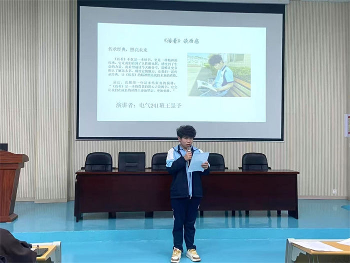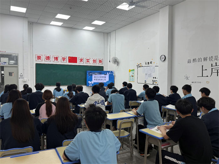 各班開(kāi)展形式多樣的讀書(shū)分享會(huì),有的班級(jí)共讀經(jīng)典,有的班級(jí)演繹書(shū)中片段,有的班級(jí)探討“數(shù)字時(shí)代如何深度閱讀”……每一次思想交鋒,皆如火花四濺;每一頁(yè)輕輕翻動(dòng),皆是夢(mèng)想拔節(jié)的序曲。