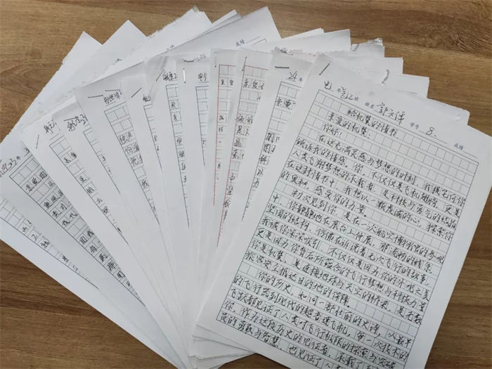 云端敘事、鋼鐵的溫柔、起落架上的夕陽(yáng)、渦輪轟鳴里的詩(shī)歌、航跡云畫(huà)下的誓言。同學(xué)們以深情文字傾訴對(duì)機(jī)翼的摯愛(ài),揮毫潑墨間,一封封熾熱情書(shū)躍然紙上。