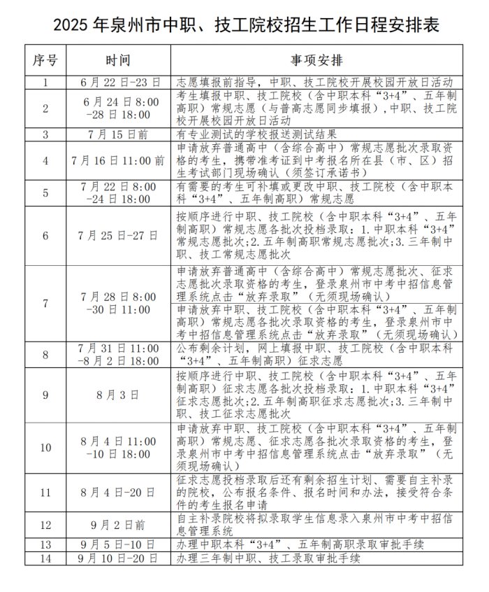 2025年泉州市中招日程安排