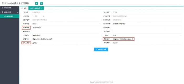 3.登錄后,界面不會(huì)直接進(jìn)入志愿填報(bào),而是進(jìn)入“修改考生信息”界面,需要空白的必填項(xiàng)填寫補(bǔ)充后,點(diǎn)擊修改考生信息提交后。