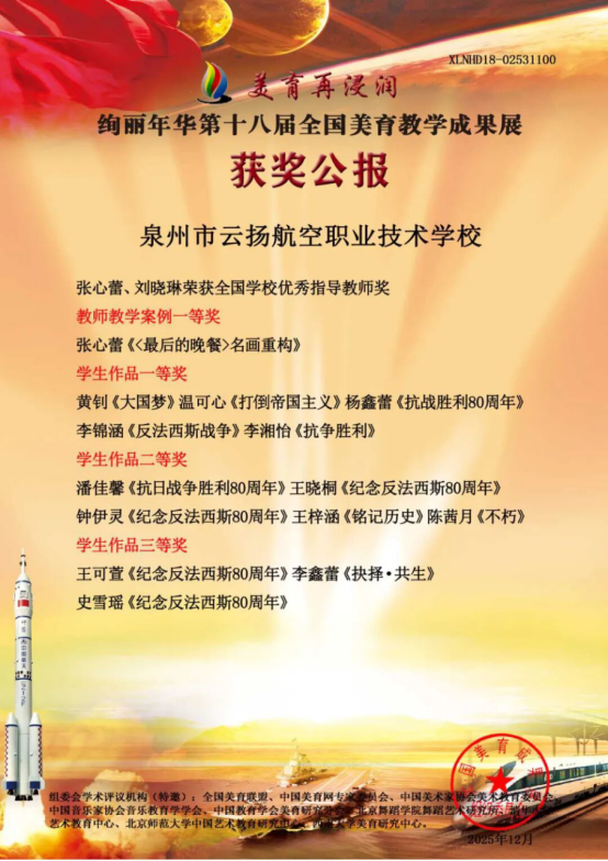 喜報(bào)頻傳!近日,“絢麗年華第十八屆全國(guó)美育教學(xué)成果展”評(píng)選結(jié)果正式揭曉,我校多位師生以扎實(shí)的專業(yè)功底、創(chuàng)新的創(chuàng)作思維,在全國(guó)眾多參賽作品中脫穎而出,斬獲多項(xiàng)榮譽(yù),充分彰顯了我校美育教學(xué)的卓越實(shí)力與獨(dú)特風(fēng)采!