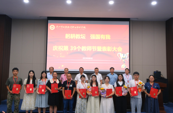 9月9日,在第39個(gè)教師節(jié)來臨之際,我校慶祝2023年教師節(jié)暨表彰大會(huì)在學(xué)術(shù)報(bào)告廳隆重舉行。大會(huì)以“躬耕教壇 強(qiáng)國有我”主題,同時(shí)表彰了我校一批優(yōu)秀教職員工,從而樹立尊師重教的教育氛圍,全體教職員工共聚一堂慶祝這個(gè)屬于“校園園丁”的節(jié)日,感受人民教師的光榮。出席本次大會(huì)有學(xué)校理事會(huì)郭守強(qiáng)理事長、潘向東書記、杜成達(dá)常務(wù)副校長等校級領(lǐng)導(dǎo),大會(huì)由陳炳耀副校長主持。