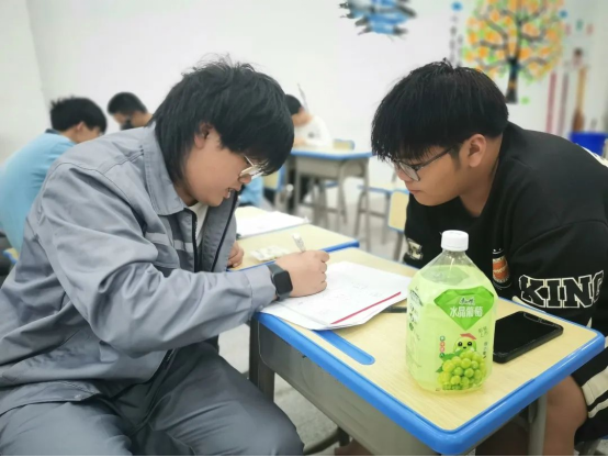 學生們根據(jù)各自科目老師制定的復習計劃結合個人能力,認真復習,主動向科任教師請教。有的和學生在交流討論,有的在查看筆記,有的在鞏固練習,主動將“想、查、看、寫、說”五字復習法落到實處。